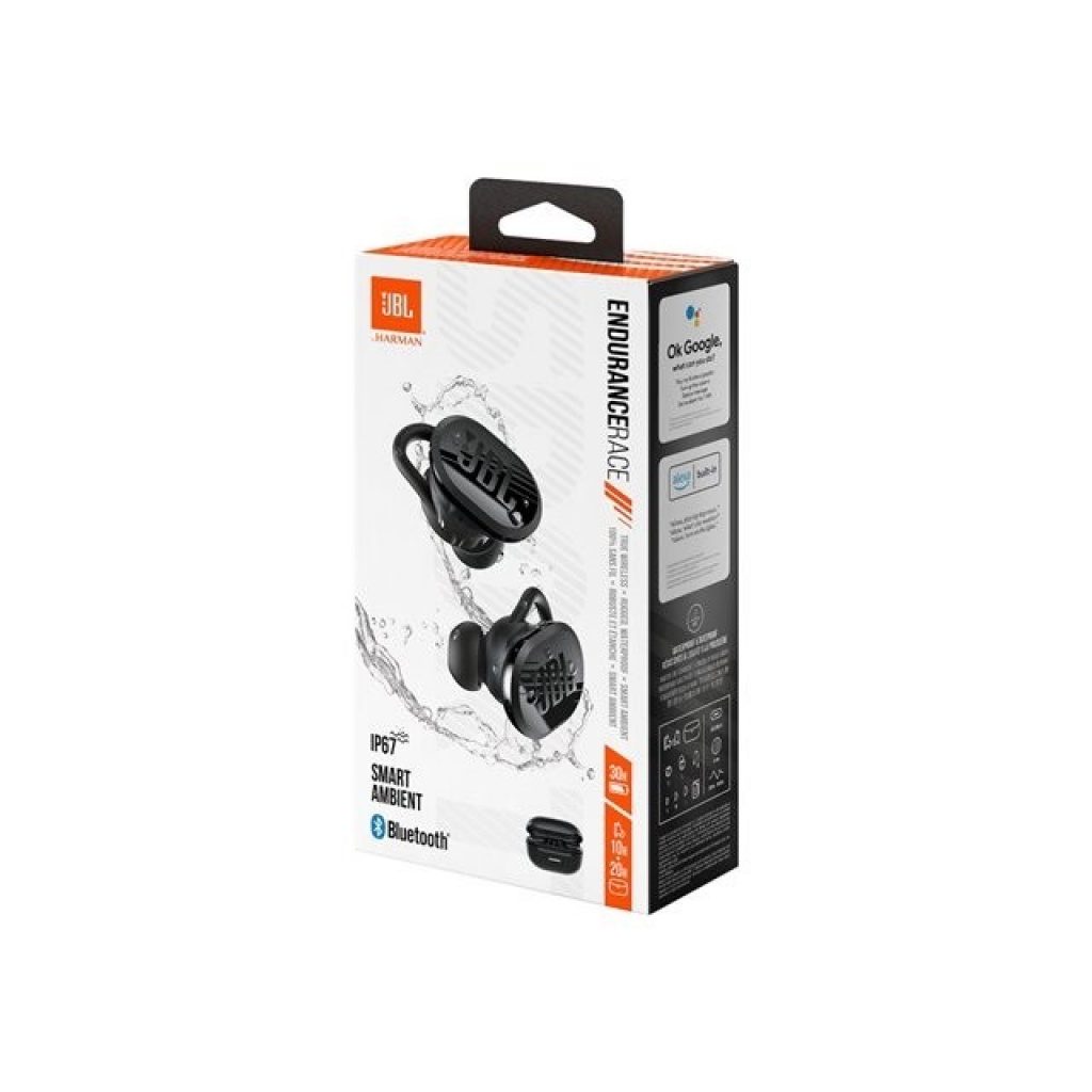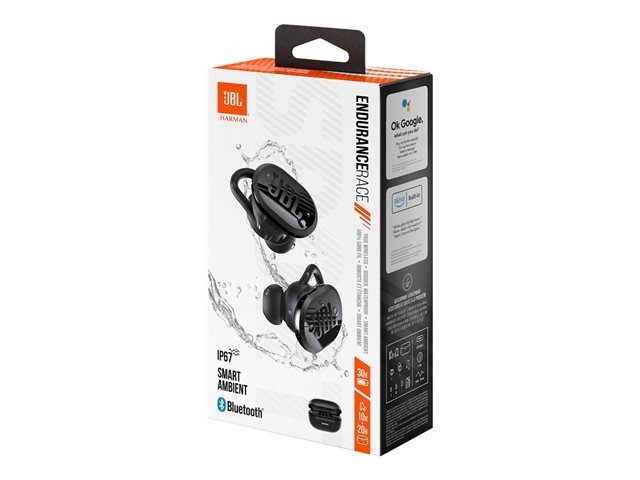 - JBL Endurance Race TWS te permite estar activo desde la playa hasta la sala de reuniones, totalmente hermeticos y sumergibles en agua hasta 1m.