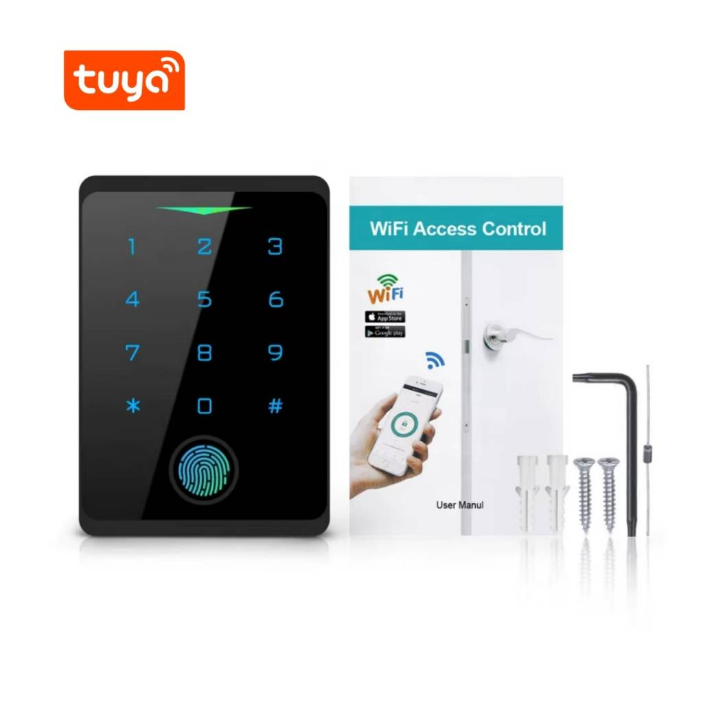 - Este teclado táctil de control de acceso Tuya WiFi impermeable es una solución segura y conveniente para controlar el acceso a tu hogar, oficina o negocio. Con su diseño resistente al agua y su tecnología avanzada, puedes estar seguro de que tu propiedad estará protegida. Además, ofrece múltiples opciones de desbloqueo para adaptarse a tus necesidades, incluyendo la función de huella digital.