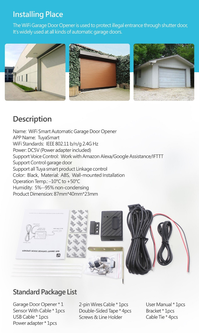 SISTEMA AUTOMATICO DE APERTURA DE GARAGE WIFI TUYA SMART