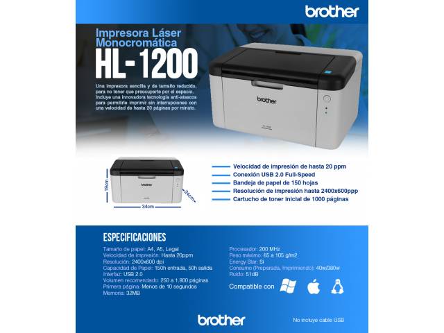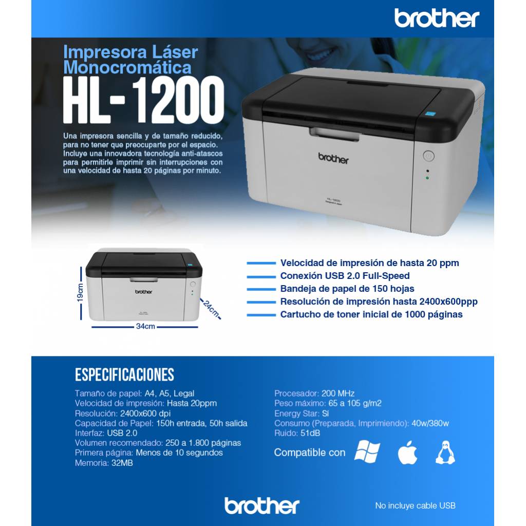 La HL-1200 es una impresora láser monocromo compacta, muy sencilla y facil de usar.