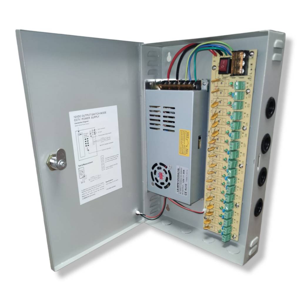 Caja fuente de 18 canales para distribución de cámaras CCTV