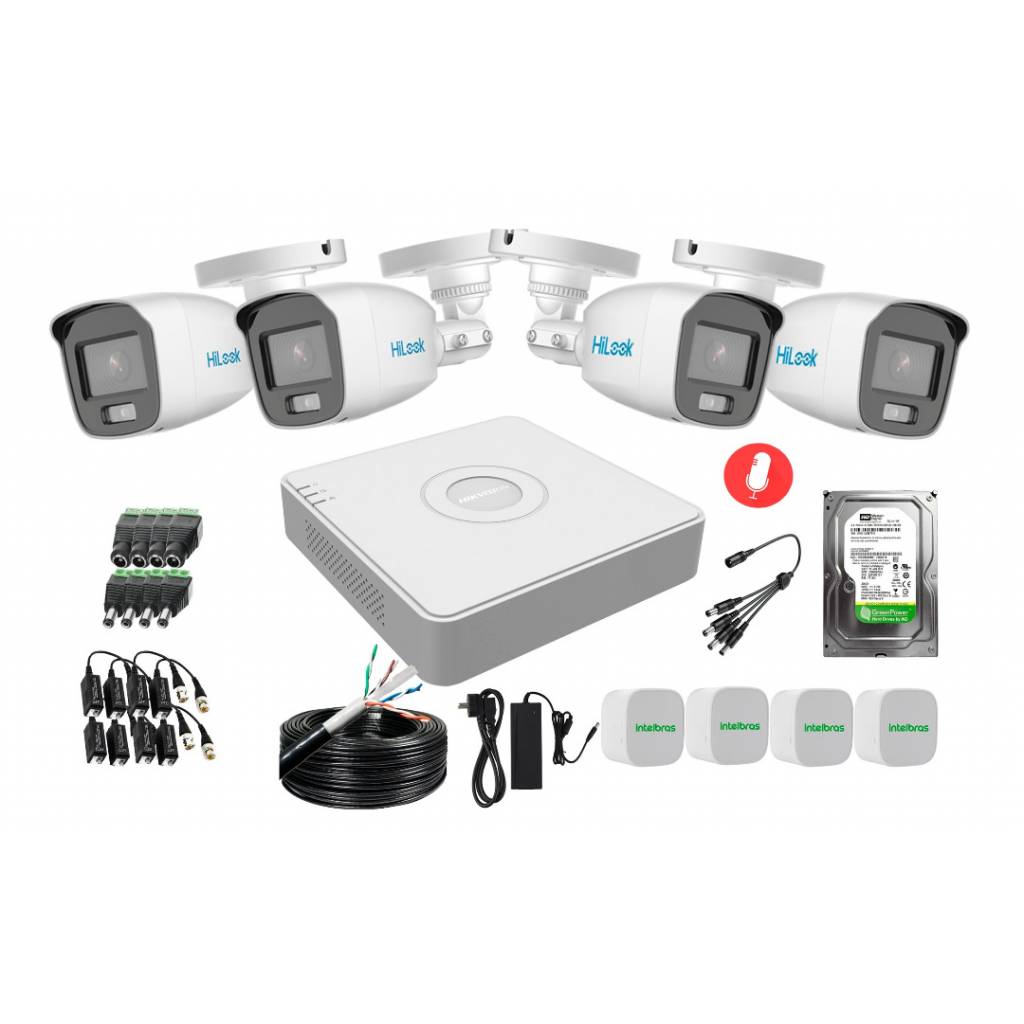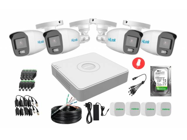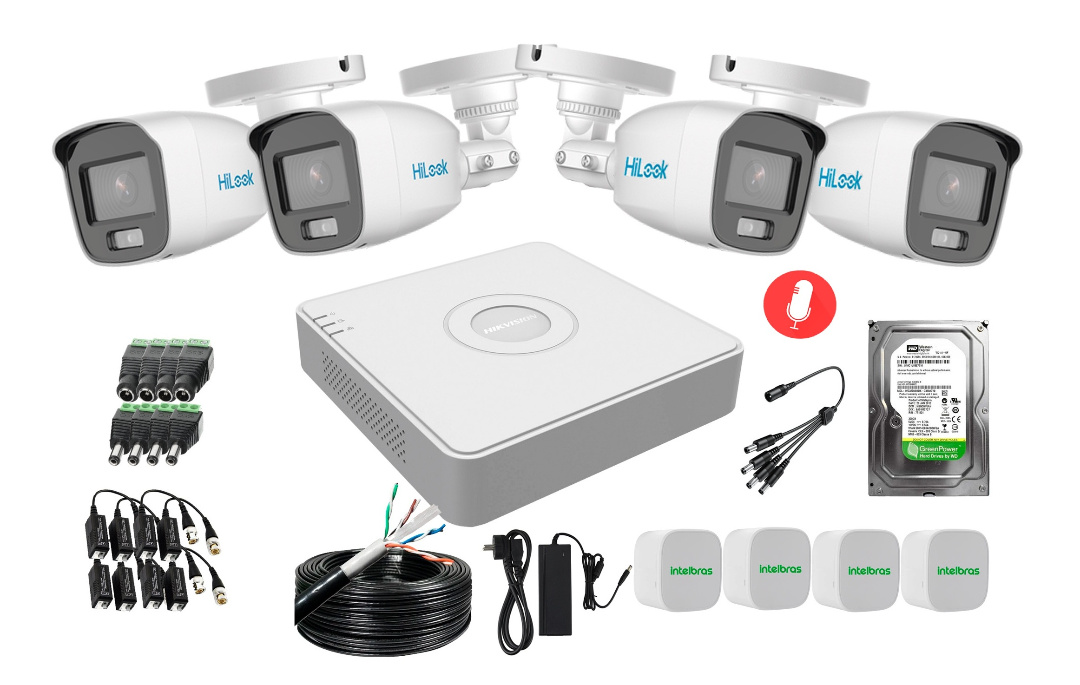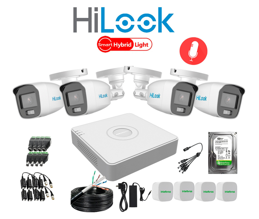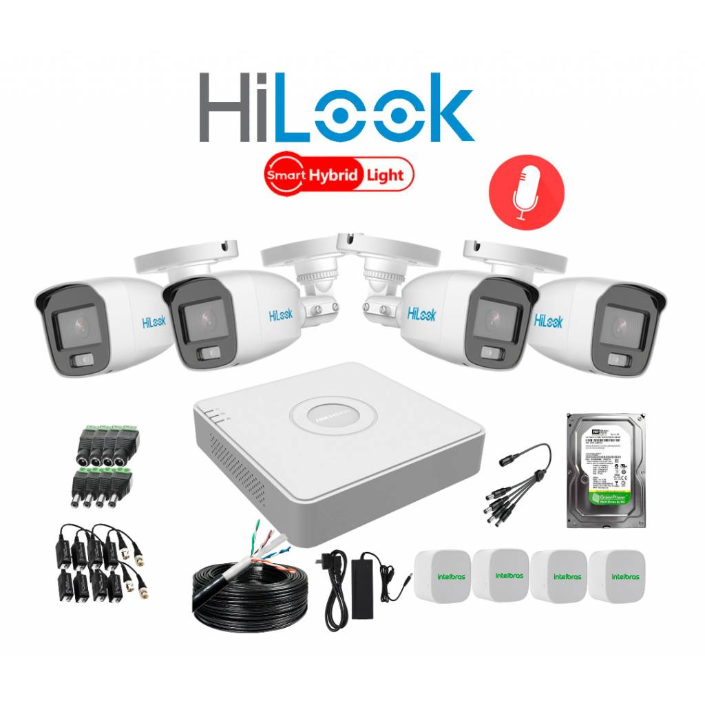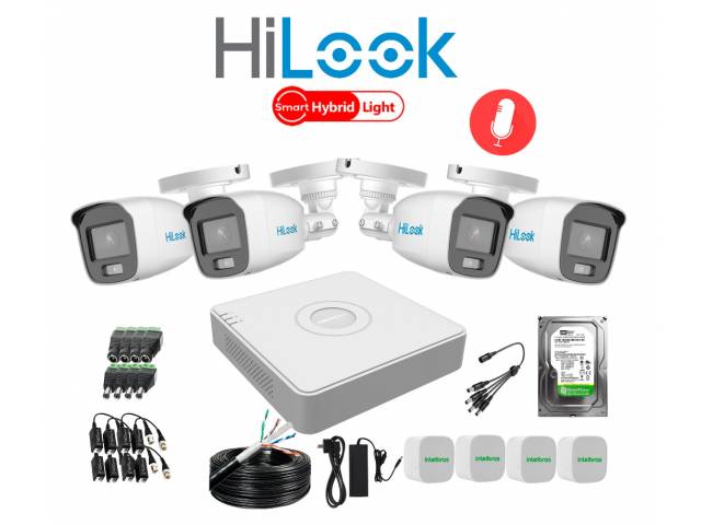 KIT DE 4 CÁMARAS CON MICRÓFONO HILOOK Y DVR HIKVISION