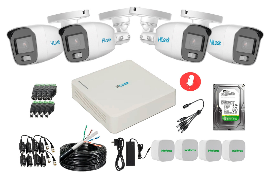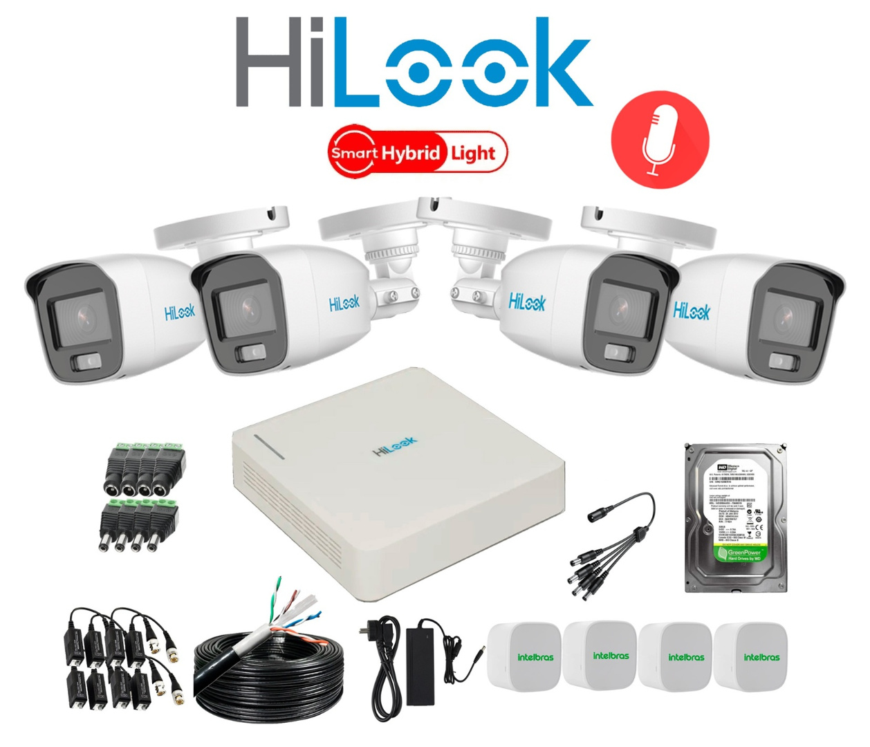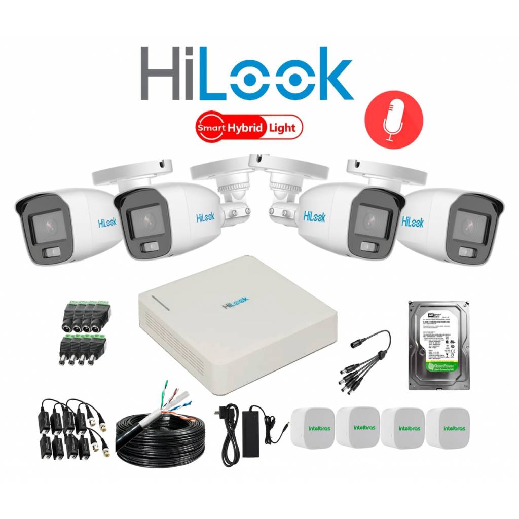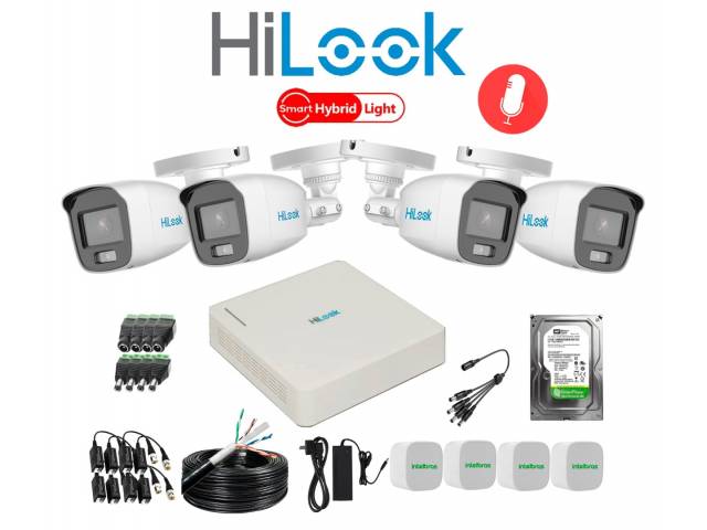 4 - CAMARAS HILOOK 2MP BULLET EXTERIOR - PLASTICO - C/AUDIO - THC-B127-LPS