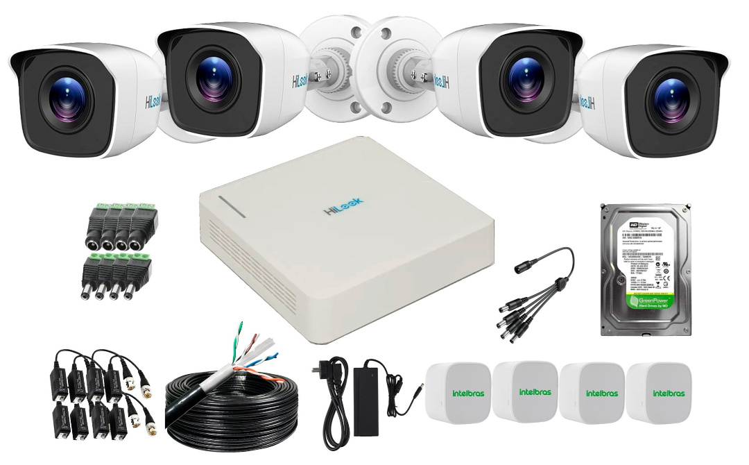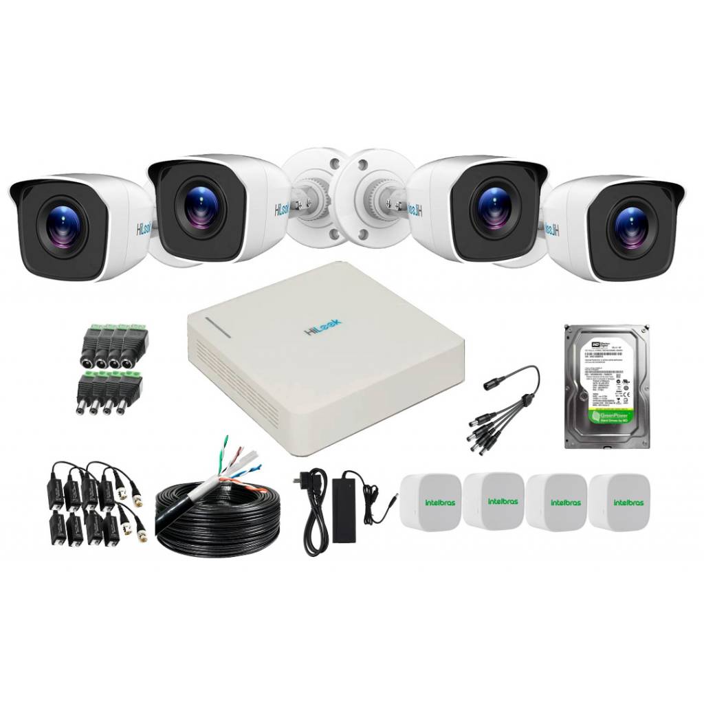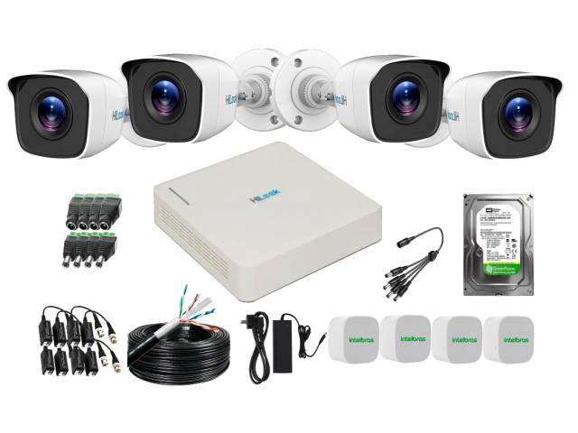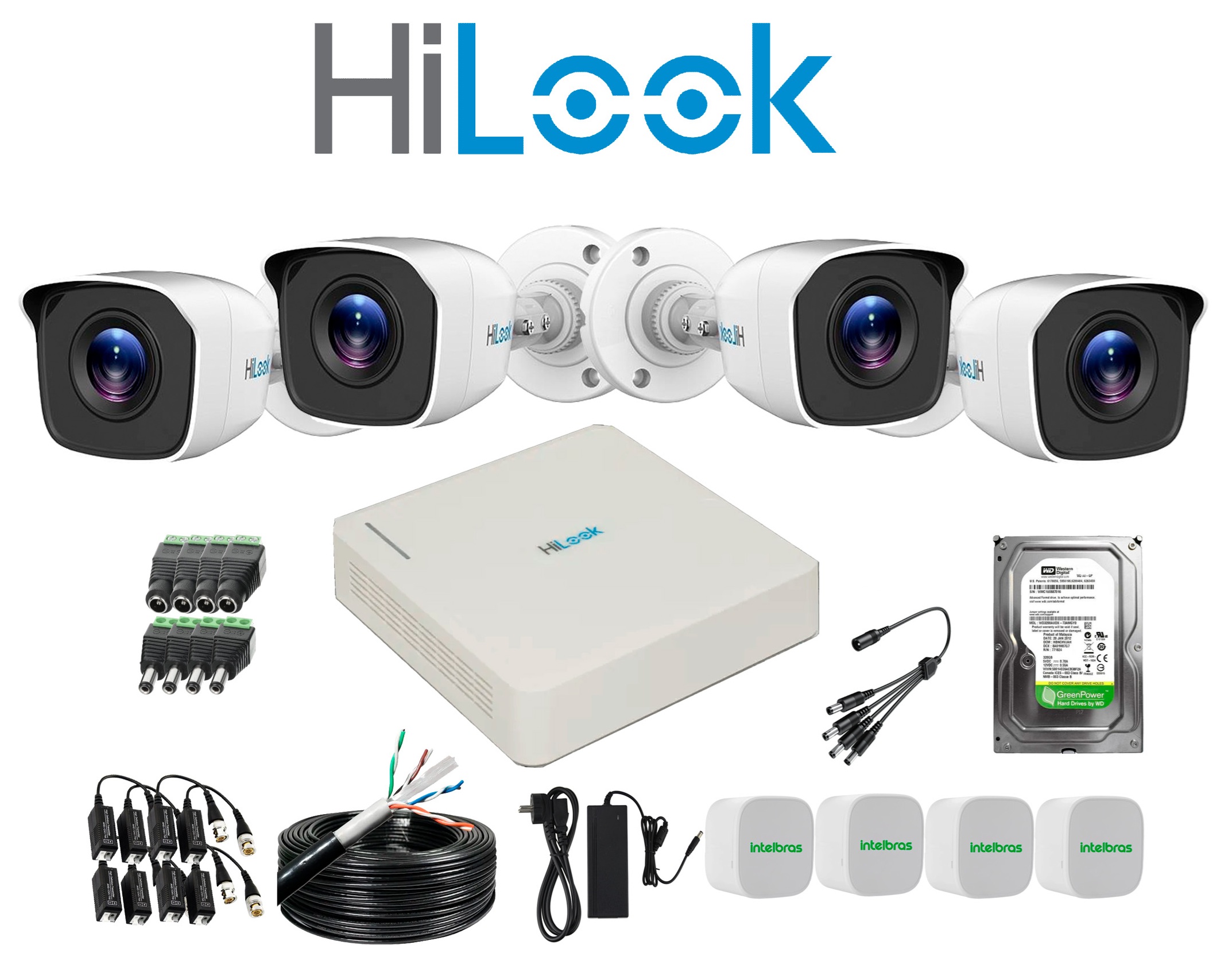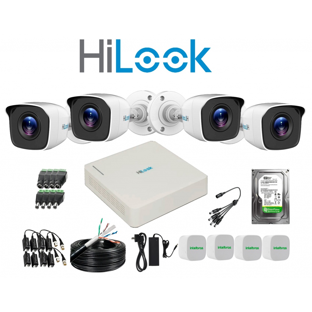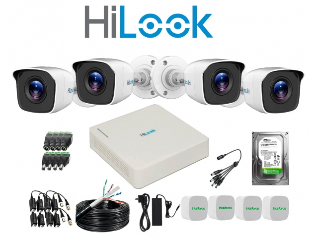 KIT HILOOK DVR 4CH + 4 CAMARAS 2MP BULLET PLÁSTICO IR + DISCO