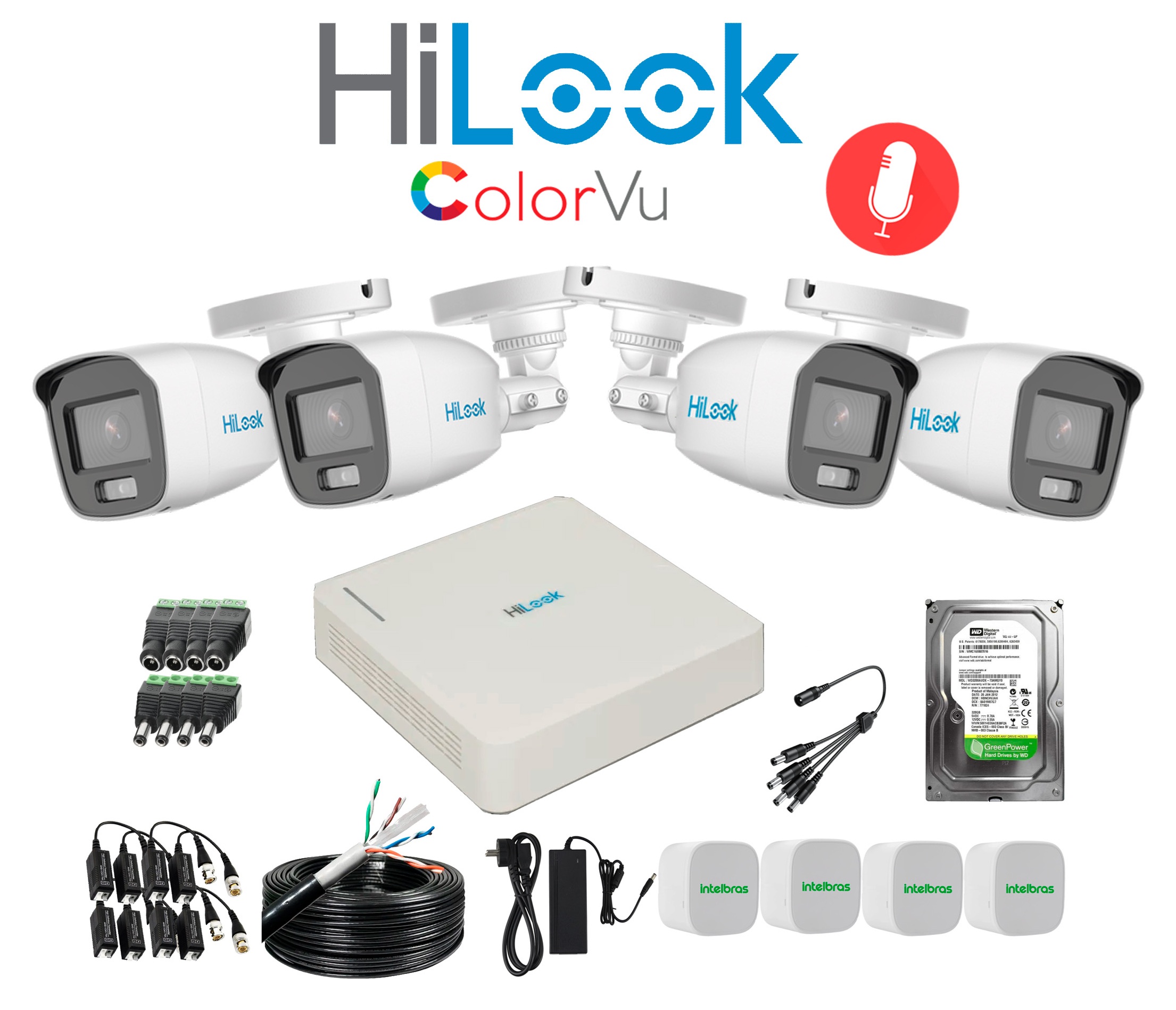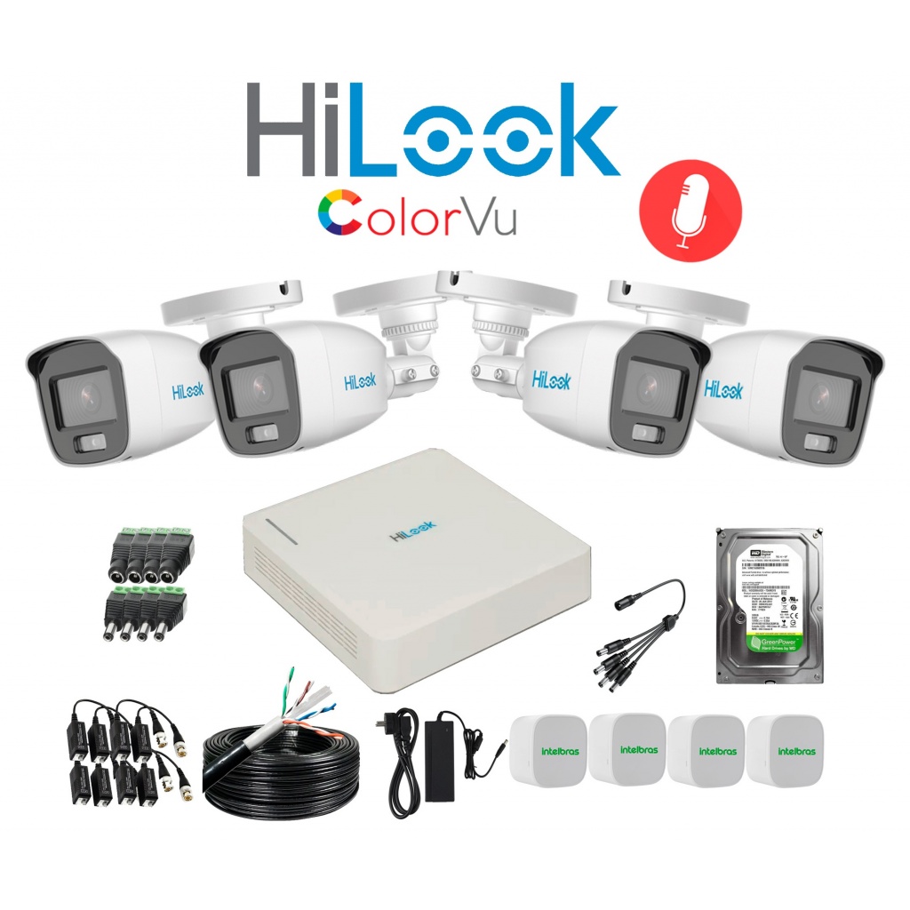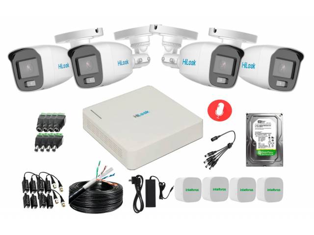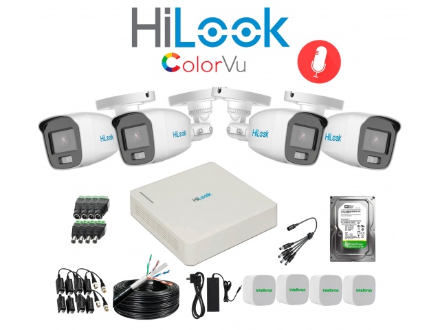 4 - Cámaras HILOOK 2MP Bullet exterior COLORVU - THC-B129-PS (MICROFONO)