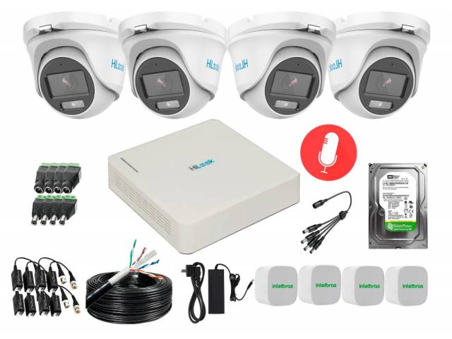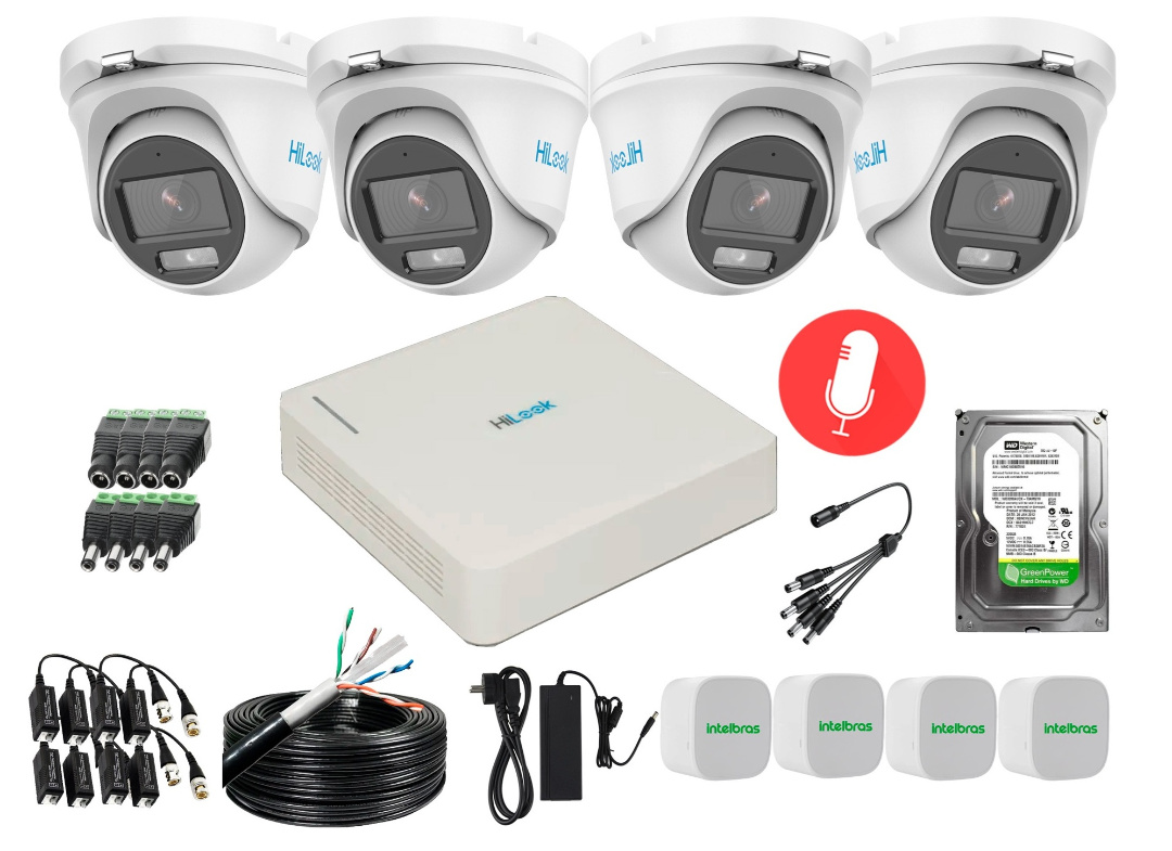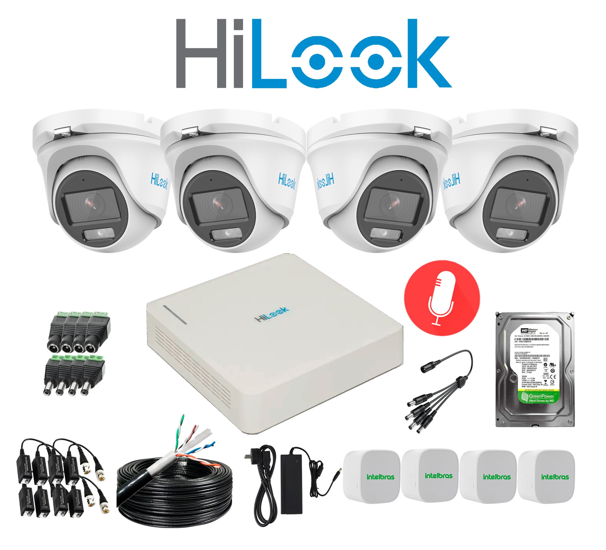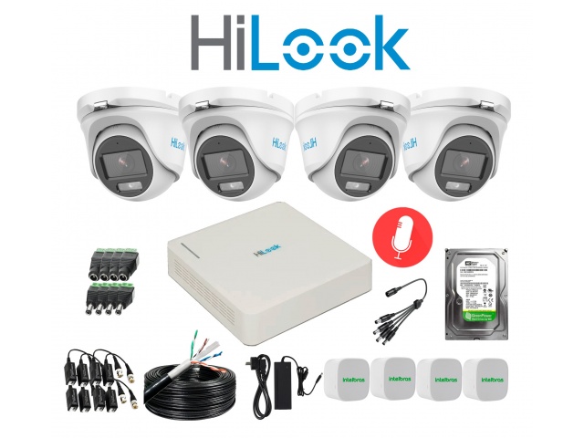 4 - CAMARAS HILOOK 2MP TURRET EXTERIOR - COLORVU - METAL - CON MICRÓFONO - THC-T129-MS