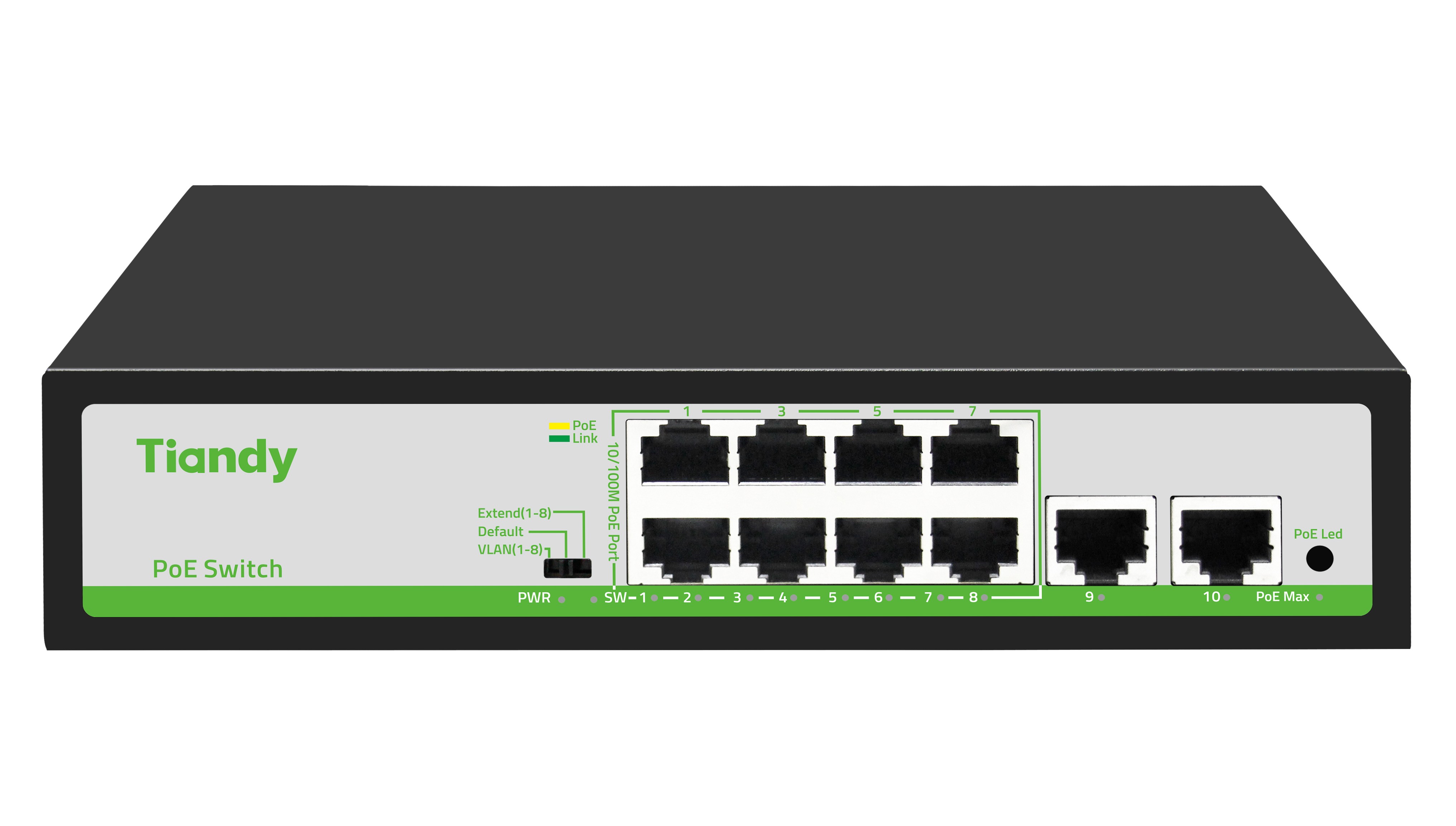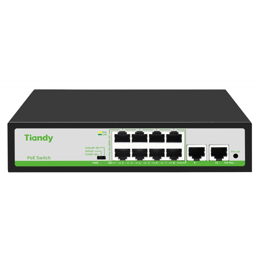 • 8*10/100Mbps PoE Ports + 2*100/1000Mbps RJ45 Uplink Ports