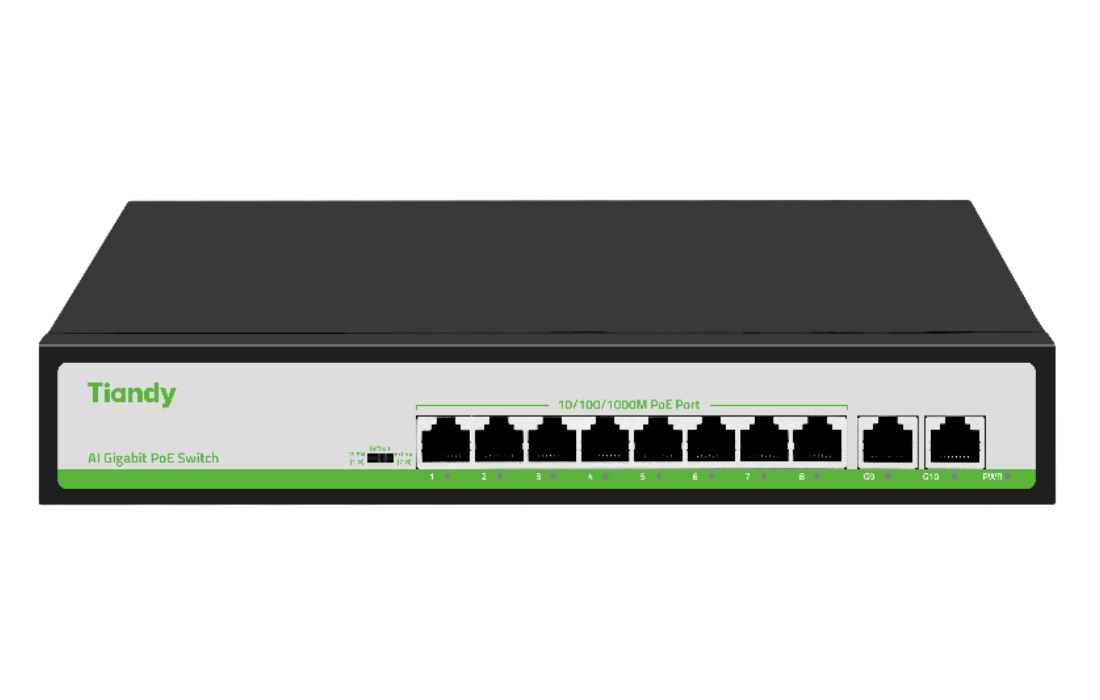 • 8 gigabit PoE network ports+2 gigabit network ports Comply with IEEE 802.3, IEEE 802.3u, IEEE 802.3u, IEEE 802.3x standards