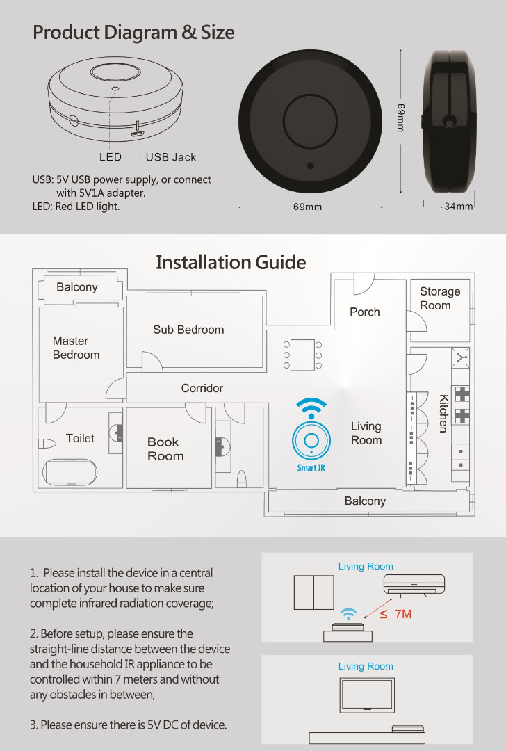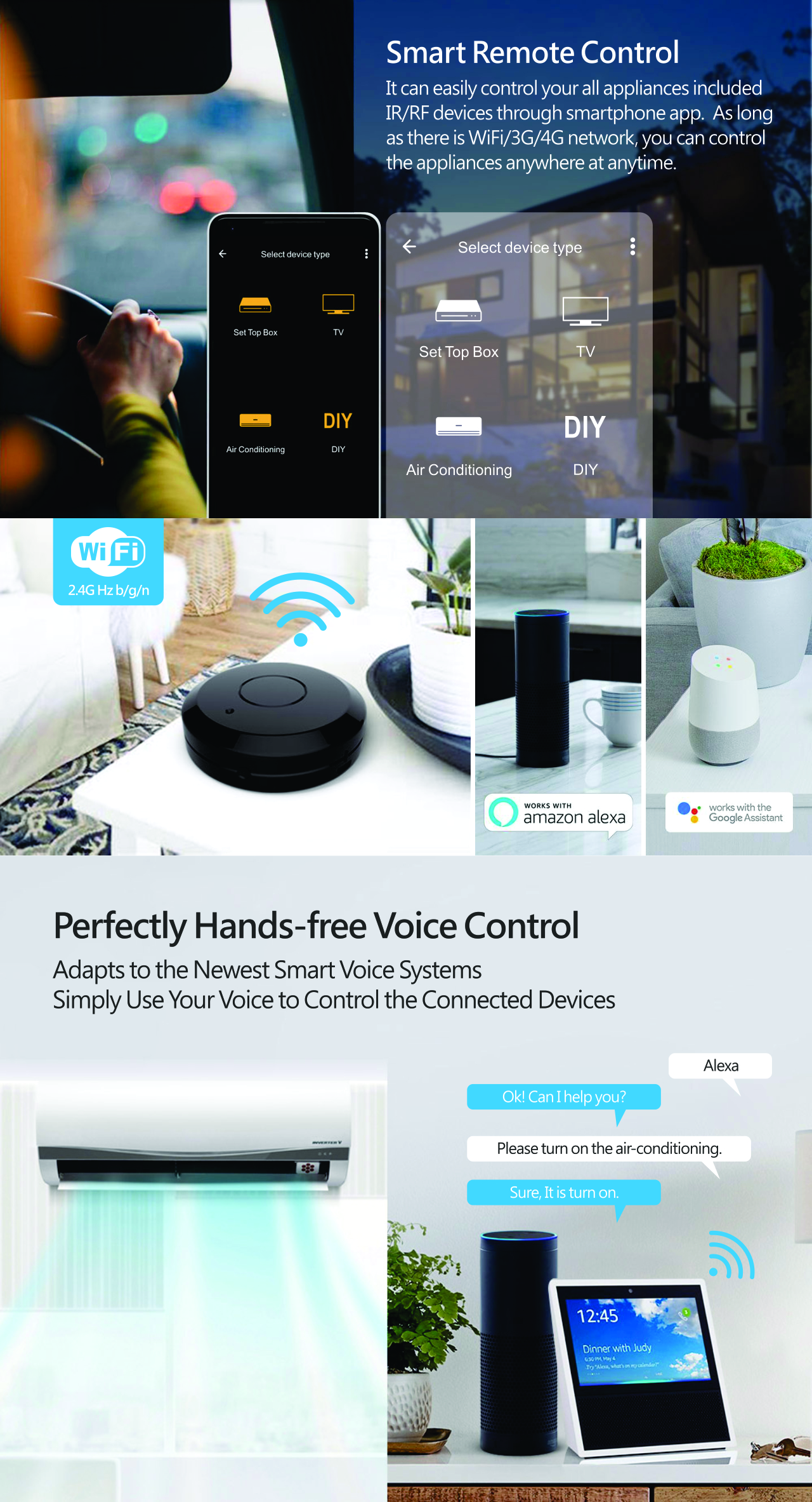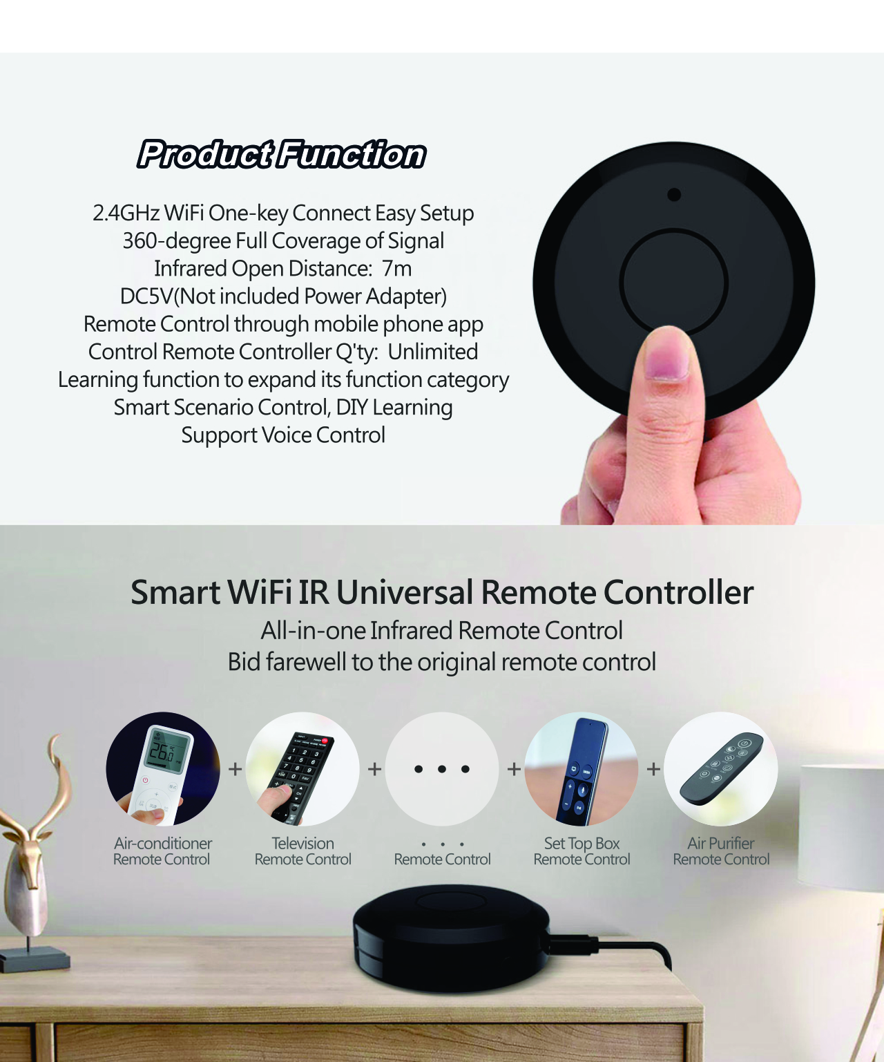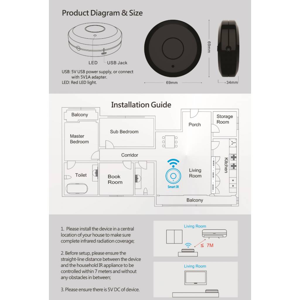 - Con este dispositivo puede controlar cualquier dispositivo de su casa que tenga IR, como ser aires, tvs, decodificador, etc.