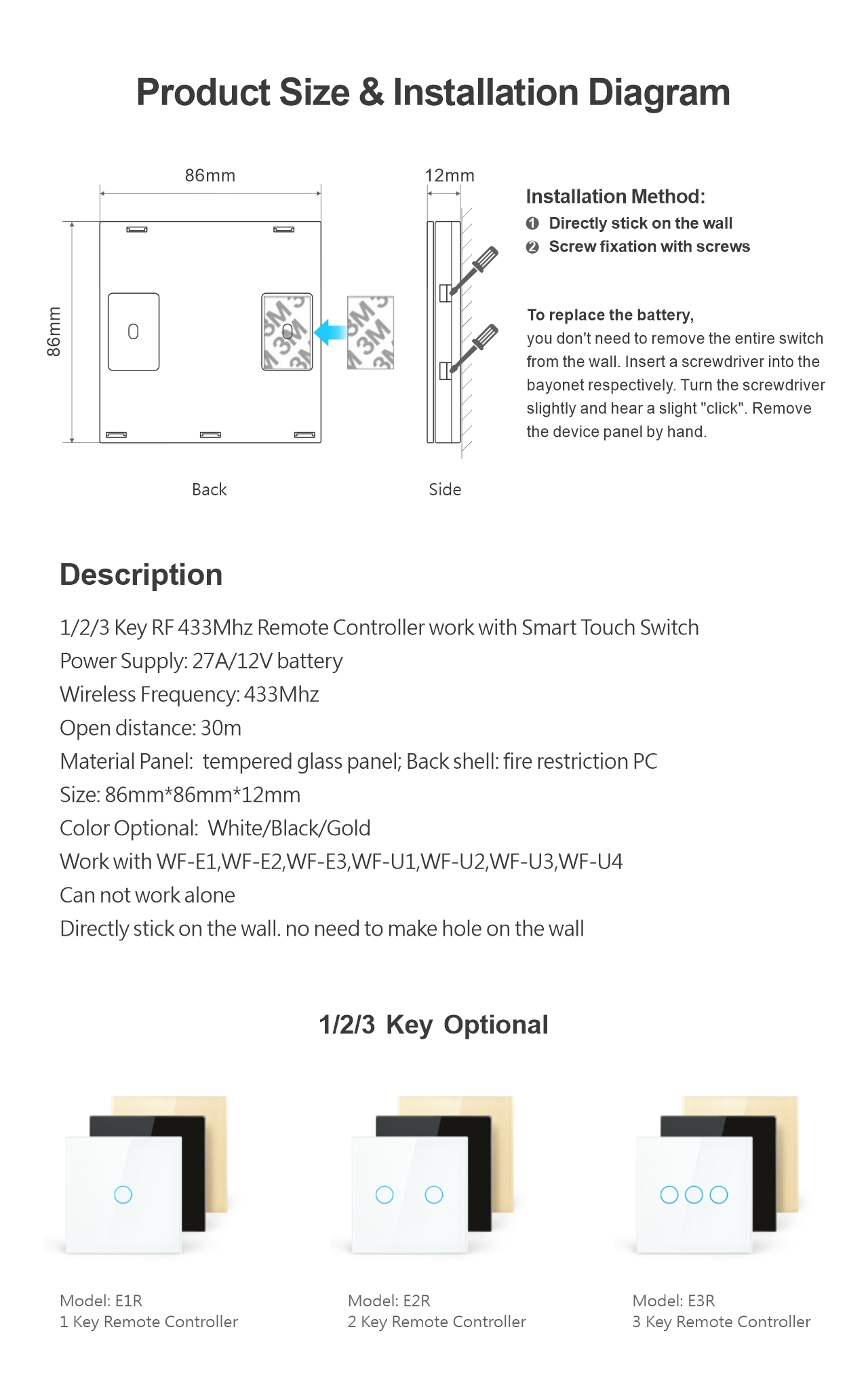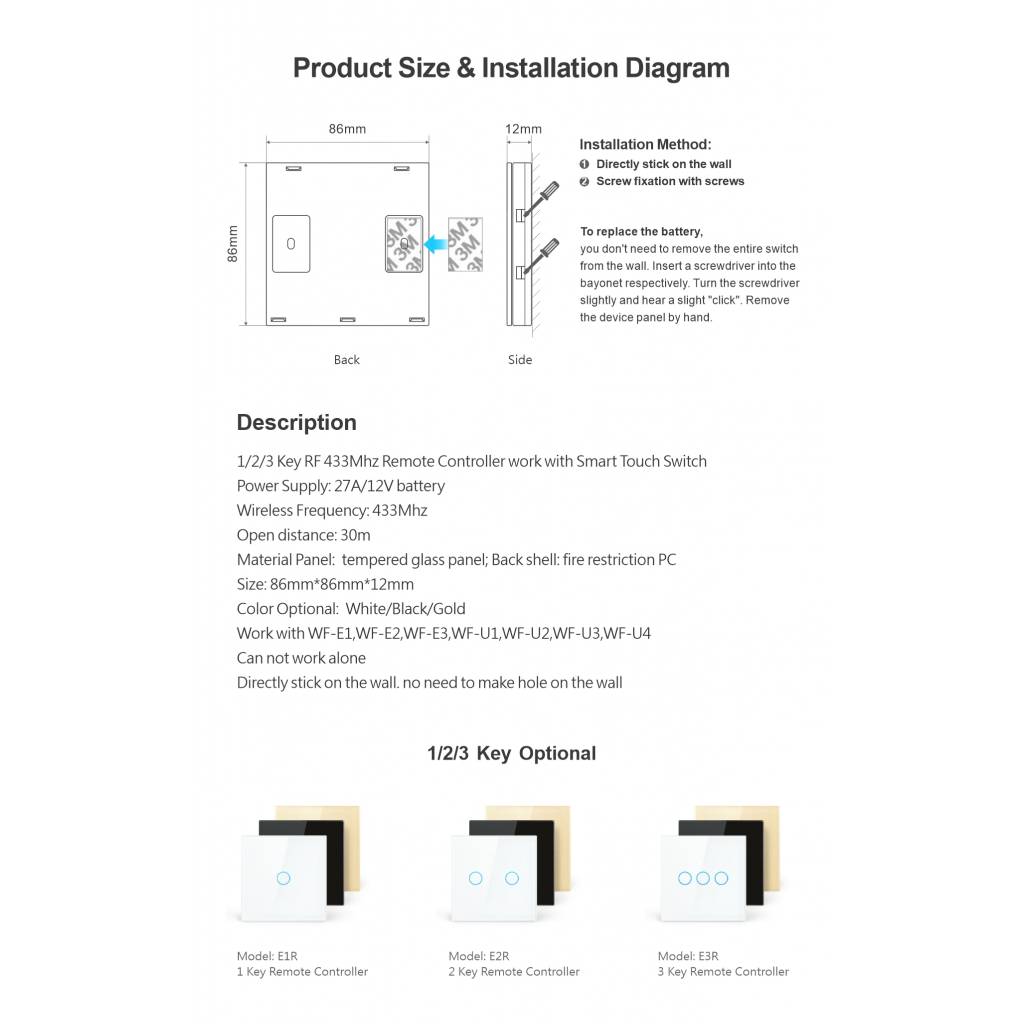 ESTE ITEM REFIERE A UN CONTROL REMOTO DEL SWITCH TUYA SMART. SOLO SE PUEDE INSTALAR SI YA TIENE UN SWITCH TUYA SMART WIFI INSTALADO EN LA CAJA DEL INTERRUPTOR. ESTO SE PEGA MEDIANTE UNA CINTA DOBLE FAZ EN CUALQUIER PARTE DE LA CASA, FACILITANDO EL ENCENDIDO DEL SWITCH EN CASO DE ESTAR EN UN LUGAR ALEJADO. O POR EJEMPLO PARA EL USO DE LOS NIÑOS SE PUEDE PEGAR EN CUALQUIER PARTE QUE ESTÉ A SU ALCANCE.