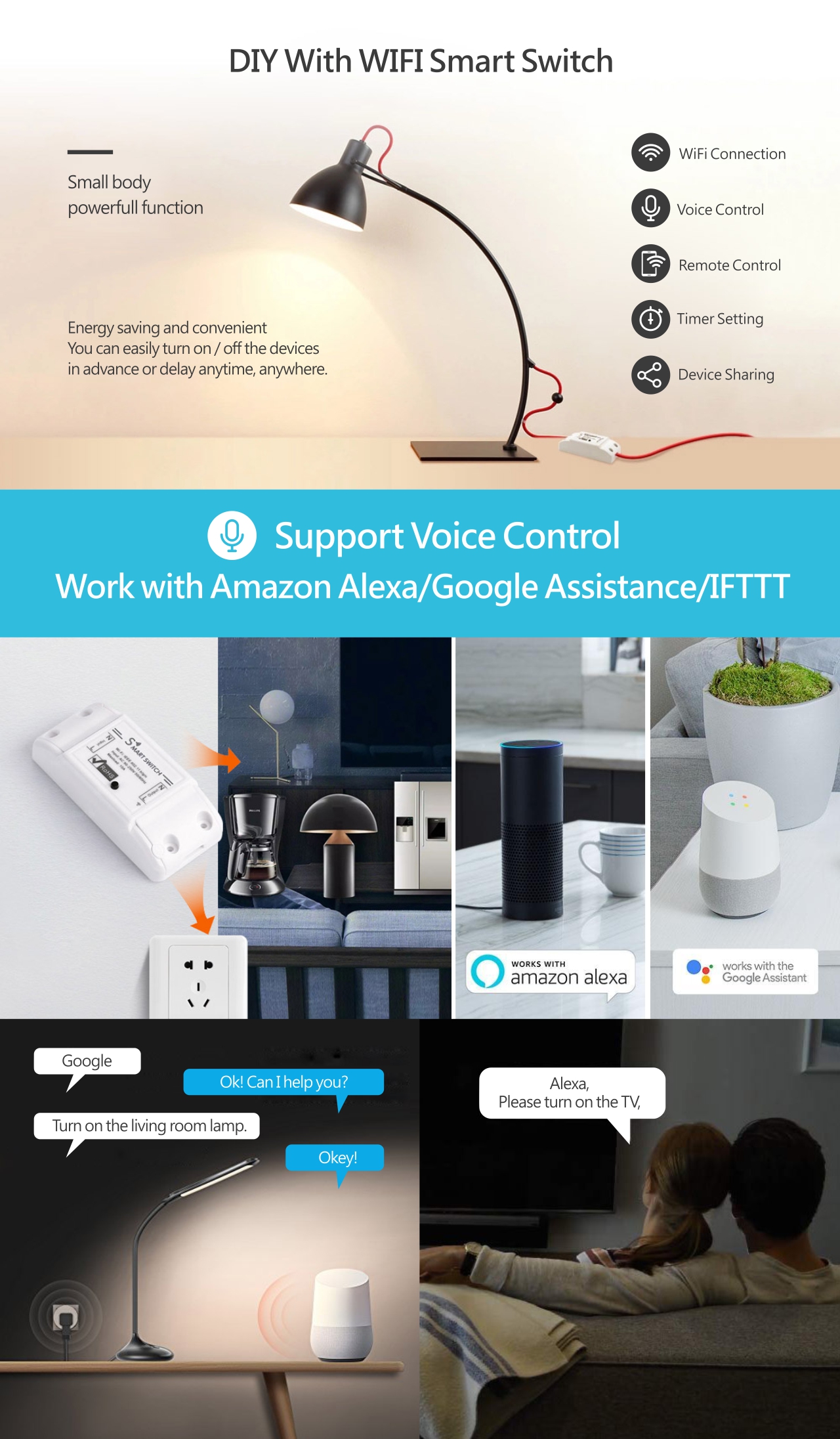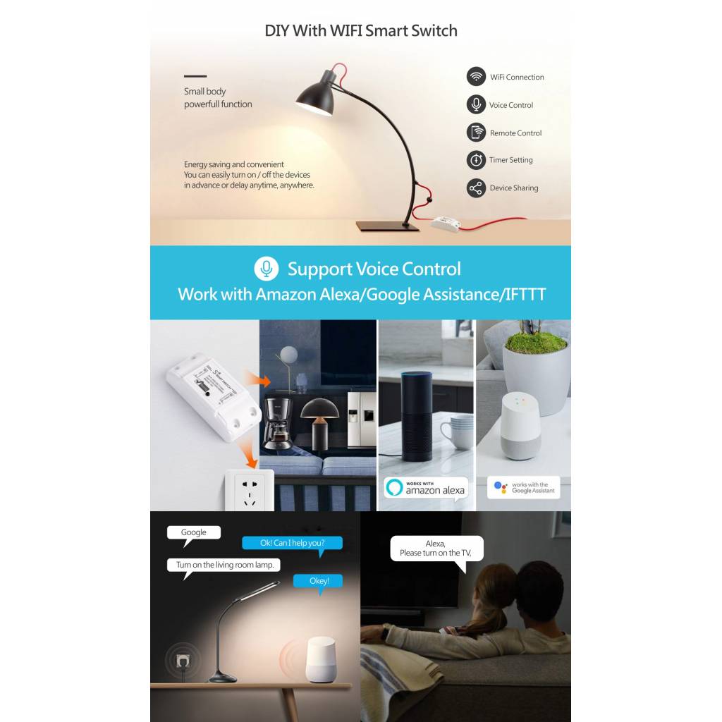 - Control de Voz: Amazon Alexa / Google Assistance / IFTTT