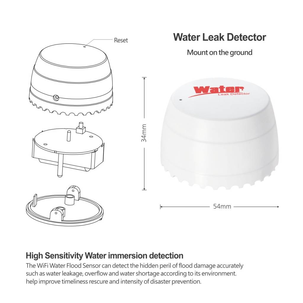SENSOR DE PERDIDA DE AGUA WIFI TUYA SMART CON BUZZER