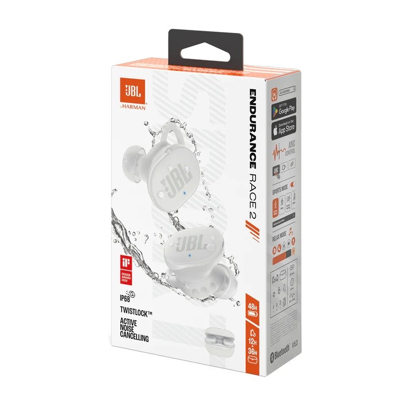 - JBL Endurance Race TWS te permite estar activo desde la playa hasta la sala de reuniones, totalmente hermeticos y sumergibles en agua hasta 1m.